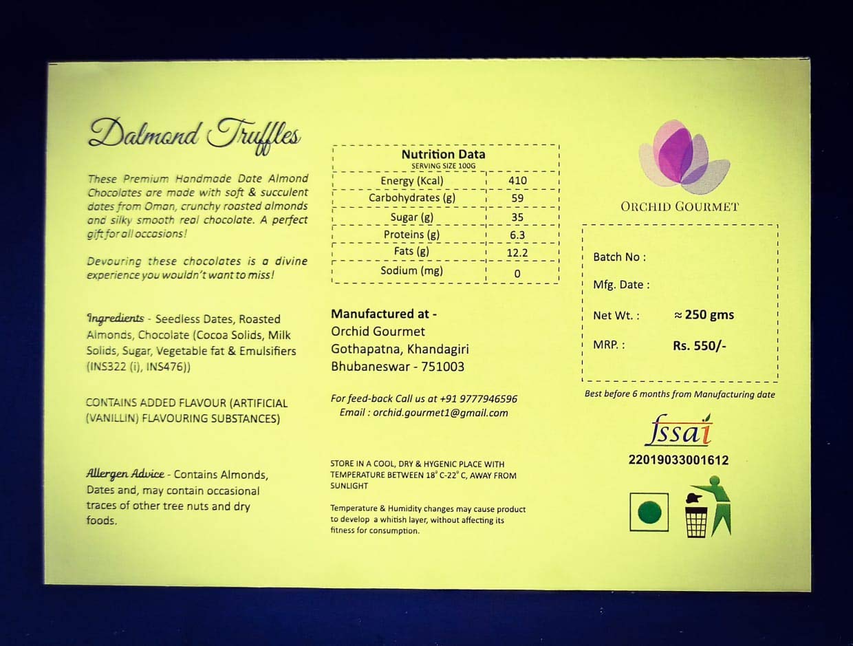 BrandDalmond TrufflesFlavourDark, Milk, and White Chocolate, Dates, AlmondsDiet TypeVegetarianItem Dimensions LxWxH19.1 x 15.2 x 3.8 CentimetersWeight500 GramsFormRocksPackage Weight499 Grams